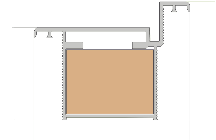 Полотно с алюминиевой кромкой с трех сторон (для опции короб без верхней траверсы с двух сторон) толщиной 65 мм. с декоративными панелями/стеклами/зеркалами с двух сторон с возможностью установки панелей сторонних производителей.