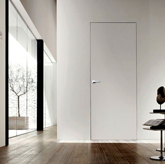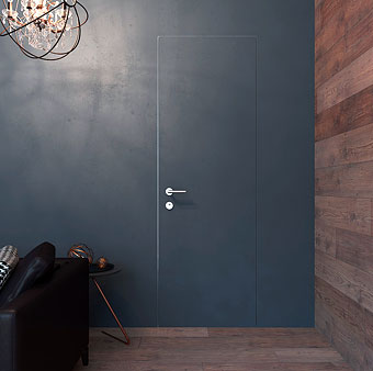 Дверь, которая растворится в дизайнерском пространстве. Универсальное решение - гладкое полотно со срытым коробом, обработанное белым грунтом. Двери-невидимки окрашивают в цвет стены, штукатурят, оклеивают обоями, прячут за керамической плиткой. 100% попадание в цвет и концепцию интерьера.