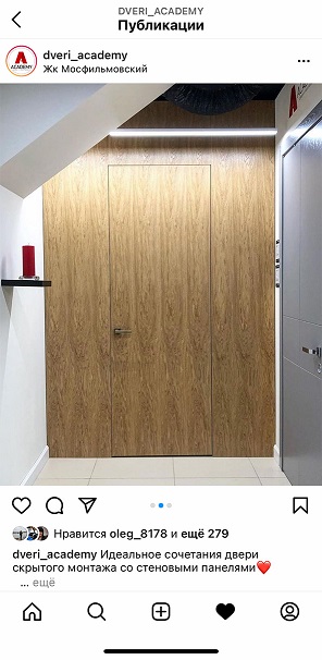 «Двери скрытого монтажа незаменимы в интерьере, где есть стеновые панели. Они позволяют сохранить ровные линии стен и создать единое пространство помещения.»
