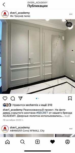 «Наши концепции в дизайне всегда опираются на минимализм и рациональность. Чистые линии и лаконичные формы всегда выстраивают строгую логику в оформлении интерьеров. В своих проектах мы почти всегда используем двери со скрытым монтажом, в сочетании с шпонированными панелями, с зеркалами или просто под покраску они помогают нам организовать ту самую притягательность минимализма.»