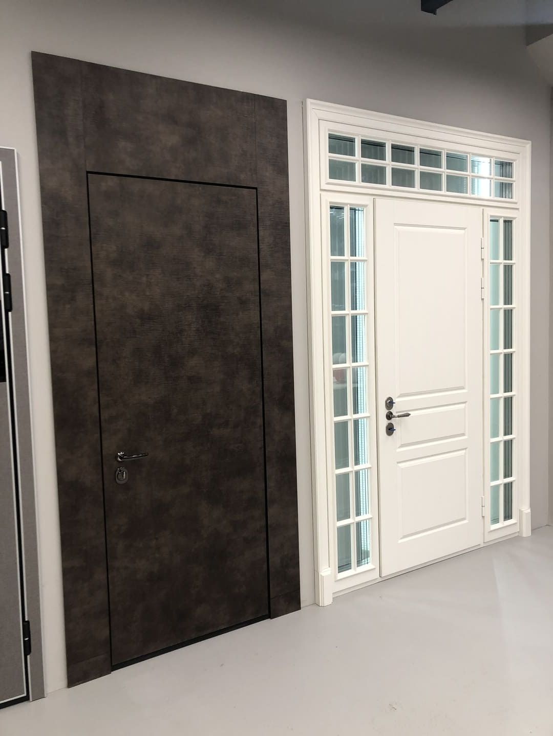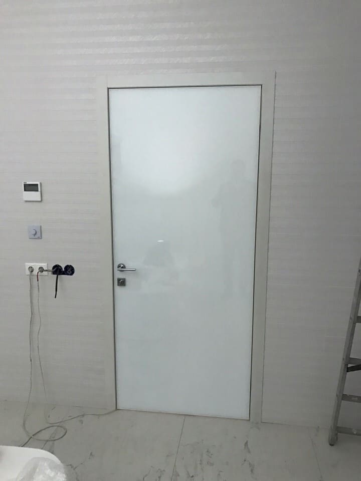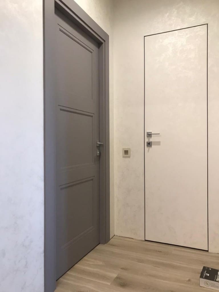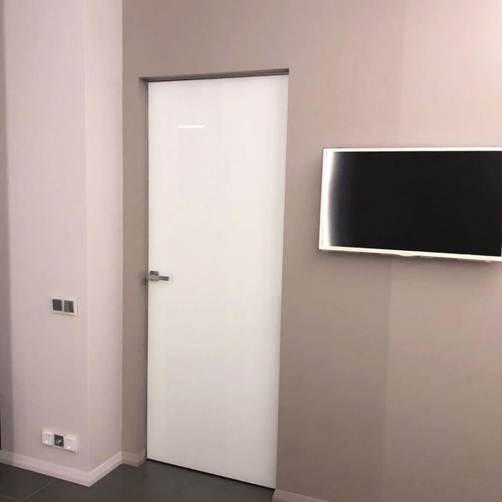 Дверь, которая растворится в дизайнерском пространстве. Универсальное решение - гладкое полотно со срытым коробом, обработанное белым грунтом. Двери-невидимки окрашивают в цвет стены, штукатурят, оклеивают обоями, прячут за керамической плиткой. 100% попадание в цвет и концепцию интерьера.