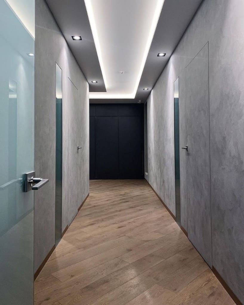 «В последнее время скрытые двери набрали большую популярность в наших интерьерах. Большим декоративным преимуществом полотна со скрытым дверным коробом является вариативность отделки. Его можно совершенно растворить в пространстве и не думать, подойдет ли полотно по цвету или стилю к окружающему интерьеру. Если дверь скрытая, ее можно оклеить теми же обоями под покраску, что и стену, или сделать в единой плоскости со световыми панелями разного вида.»