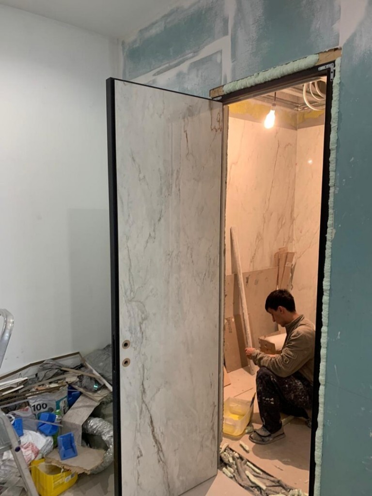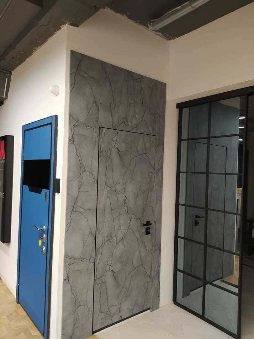 Металическая дверь со скрытыми петлями и стеновыми панелями
