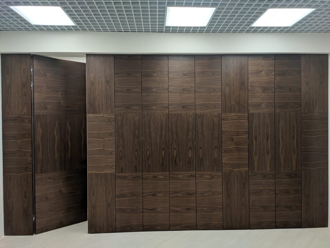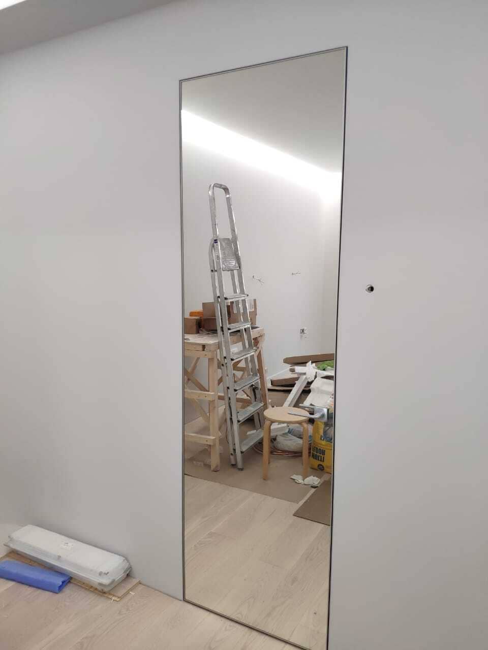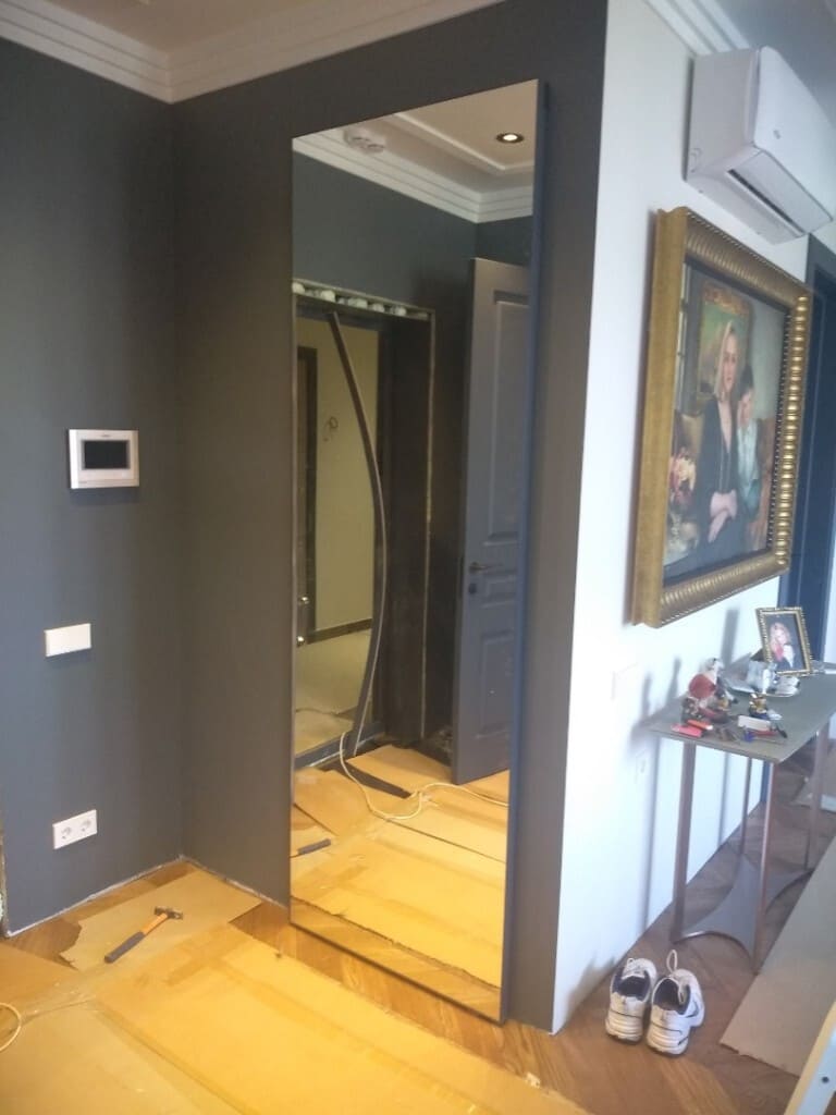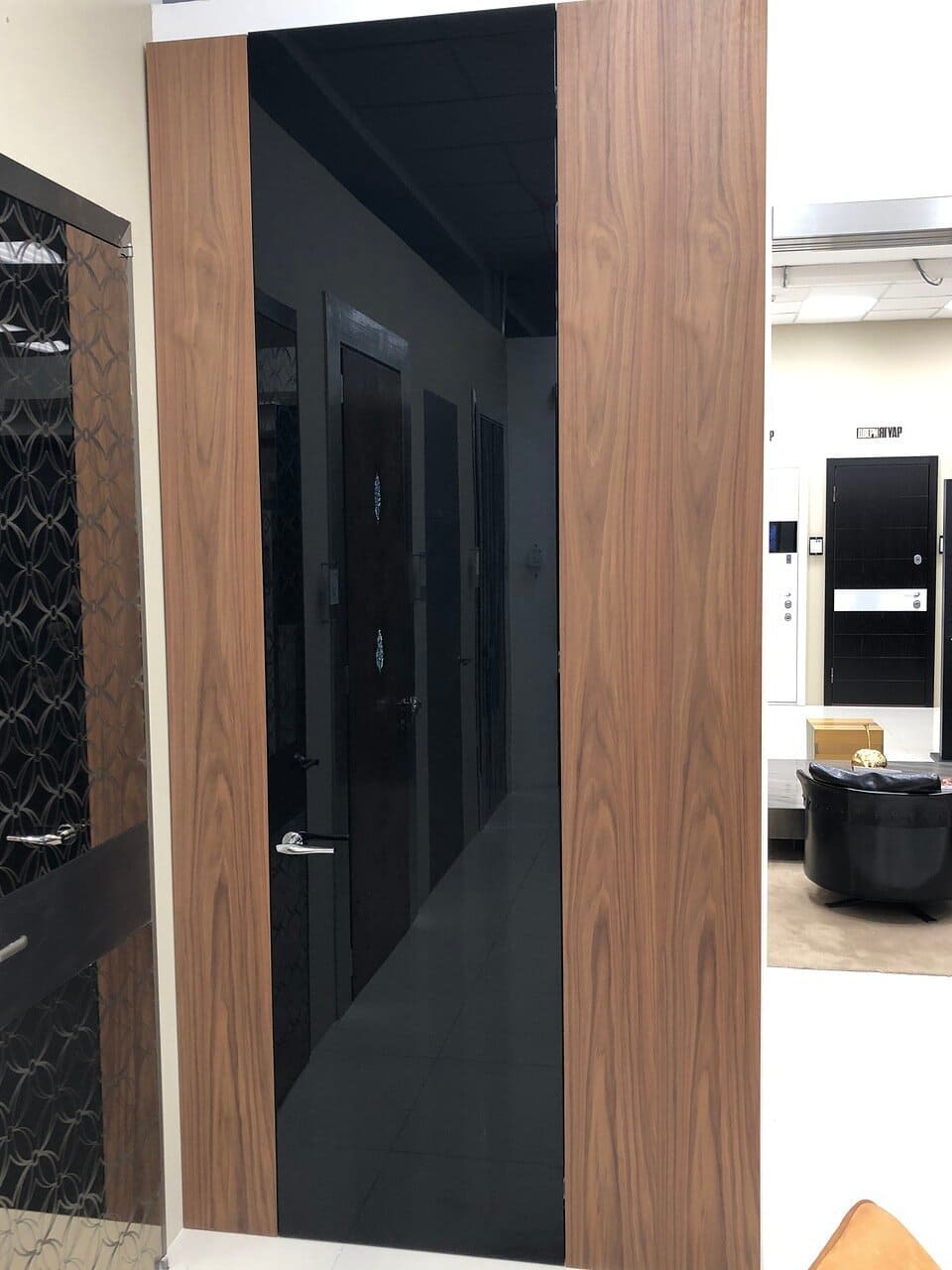 В производстве дверных полотен распространены стеклянные, пластиковые и металлические материалы. Использование зеркал и отражающих поверхностей рассеивает свет, что позволяет визуально увеличивать площадь квартиры.