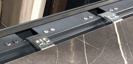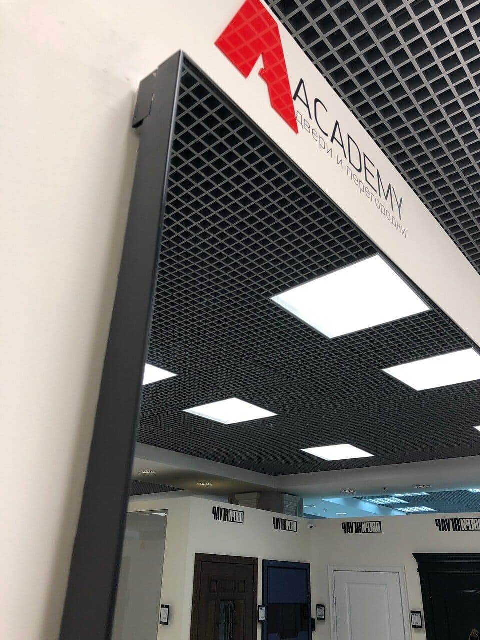 Полотно с алюминиевой кромкой с трех сторон (для опции короб без верхней траверсы с двух сторон) толщиной 65 мм. с декоративными панелями/стеклами/зеркалами с двух сторон с возможностью установки панелей сторонних производителей.